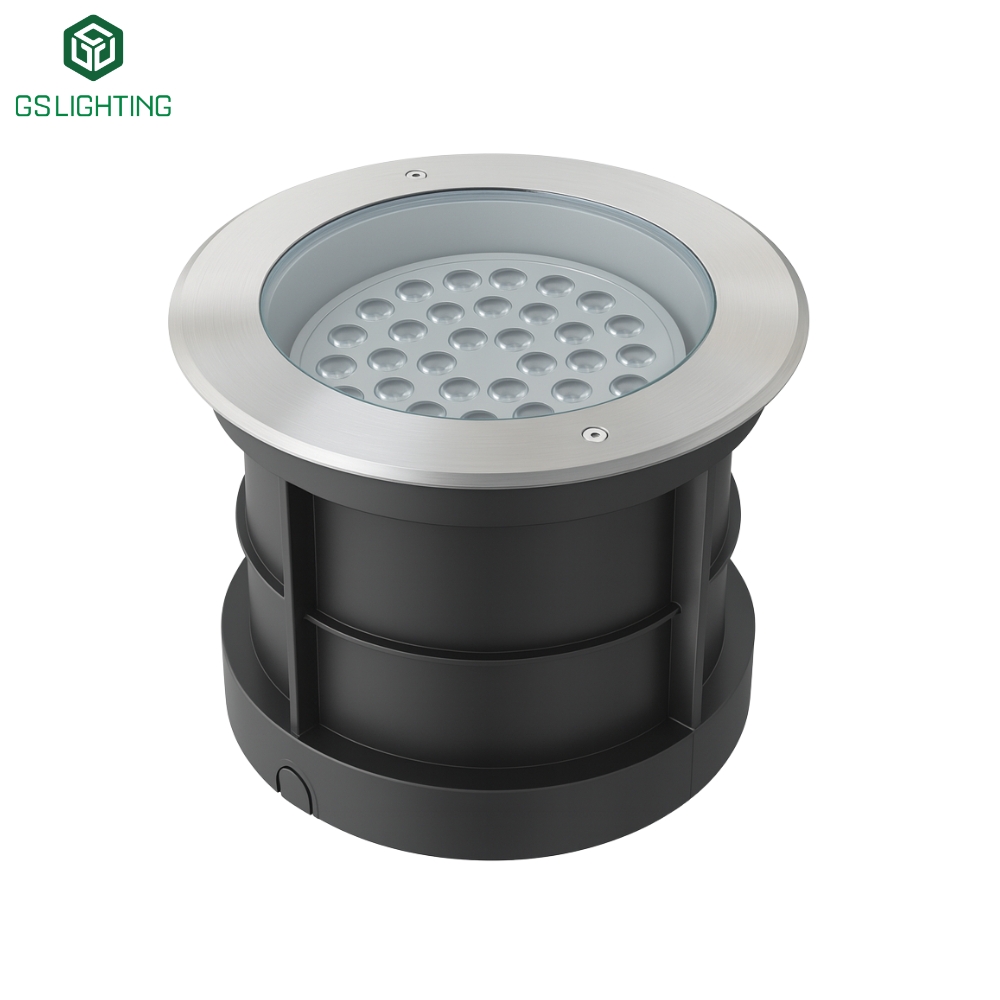 Kiểu dáng đèn âm sàn tròn với viền Inox 304 phay xước, kính phẳng giúp: