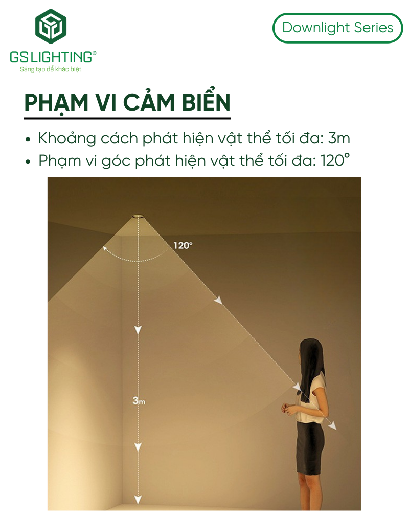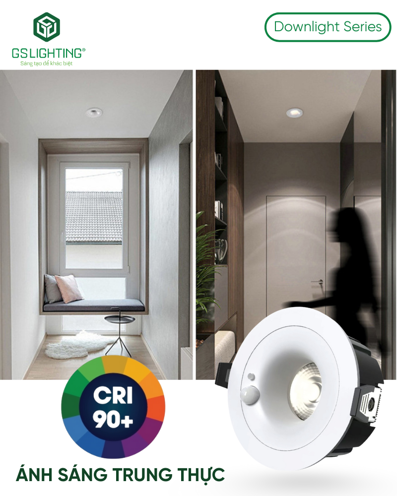 Điểm mạnh của GSDCB là giải đúng bài toán sử dụng thực tế: đèn chỉ kích hoạt khi cần, có vùng phát hiện rõ ràng, ánh sáng hoàn màu cao và hình thức gọn, dễ đồng bộ với hệ trần hiện đại.