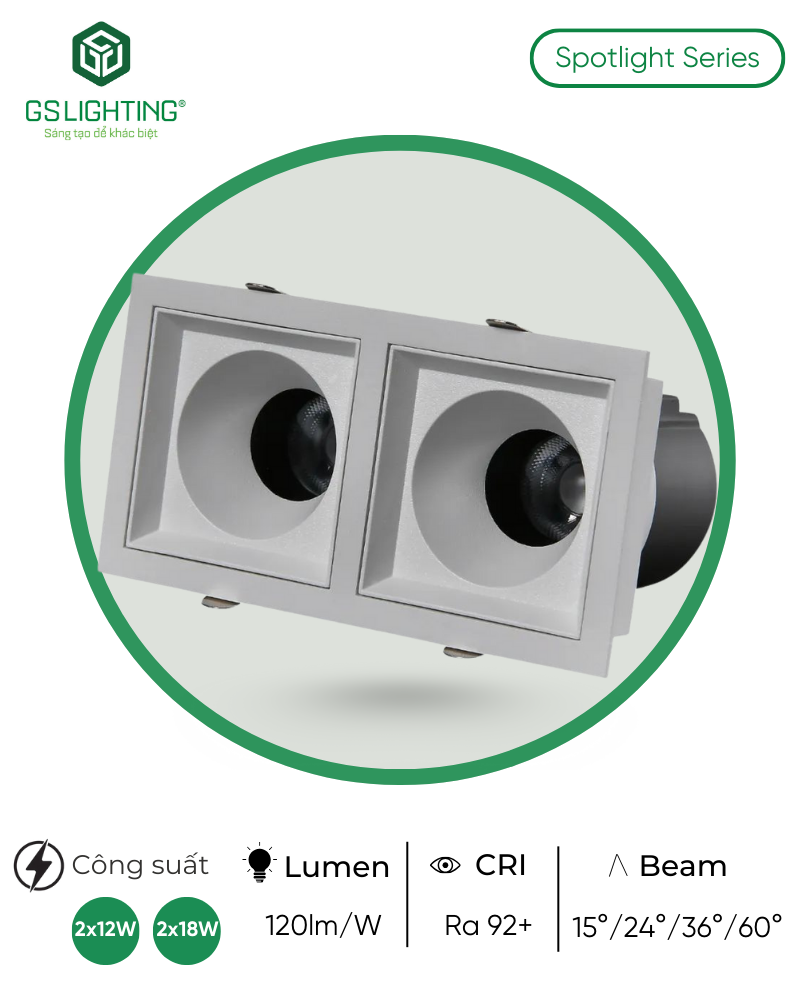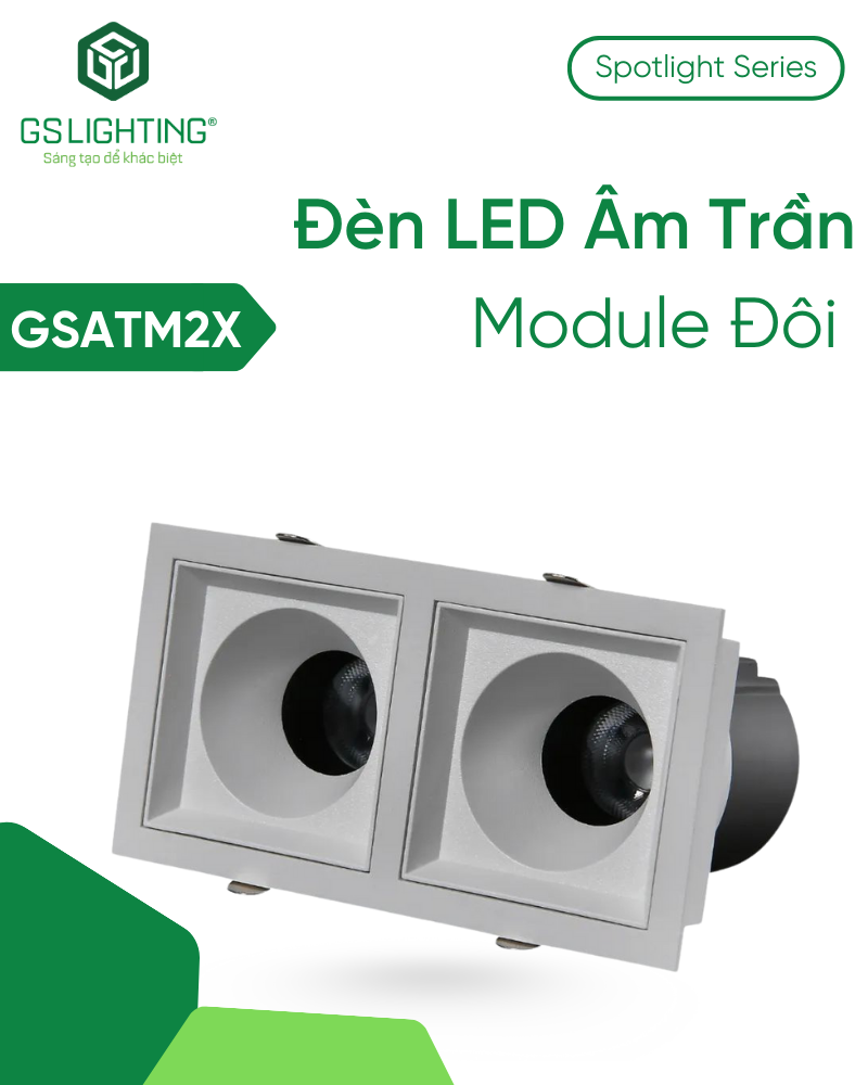 Đèn LED Âm Trần Module Đôi 12W 18W GSATM2X là lựa chọn phù hợp cho công trình cần đèn led âm trần chiếu nhấn kép, hiệu suất cao, màu sắc đẹp và nhiều lựa chọn góc chiếu. Nếu nhu cầu của bạn là showroom, retail, sảnh, bàn dài, kệ dài hoặc không gian nội thất cao cấp cần hai điểm sáng trong một khung gọn, đây là model đáng cân nhắc hơn so với downlight thông thường và nhiều giải pháp lắp rời.