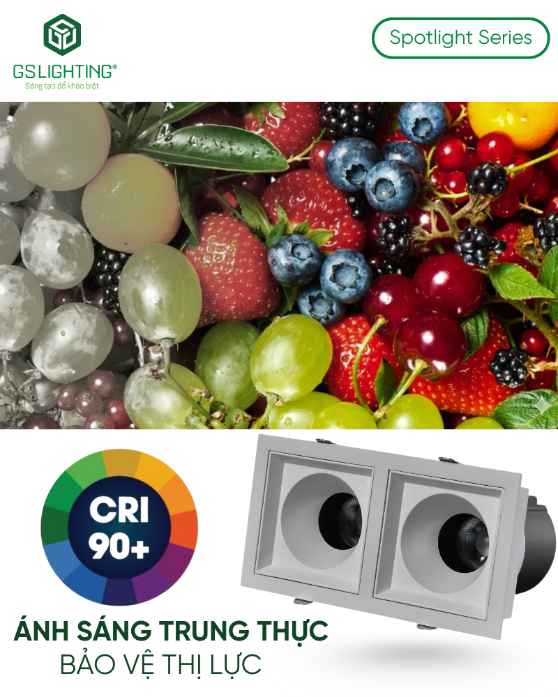 Hiệu suất 120 lm/W đặt GSATM2X ở mức tốt trong nhóm đèn âm trần chiếu điểm. Tuy nhiên, với dòng module đôi, giá trị thực tế không chỉ là sáng mạnh mà là điểm rơi sáng rõ và đều hơn trên vùng cần nhấn.