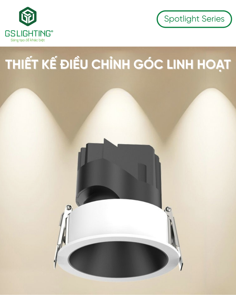 Điểm mạnh lớn nhất của GSATSL12 là sự cân bằng giữa công suất vừa đủ để chiếu nhấn rõ, beam 24° dễ ứng dụng, và khả năng chỉnh góc giúp giảm sai số tại hiện trường. Đây là một lợi thế rất thực tế trong công trình, vì nhiều vị trí lắp đèn không thể khoét lại sau khi hoàn thiện trần. Khả năng chỉnh góc giúp xử lý tình huống lệch tâm chiếu, đổi vị trí décor hoặc thay đổi điểm nhấn mà không cần sửa trần.
