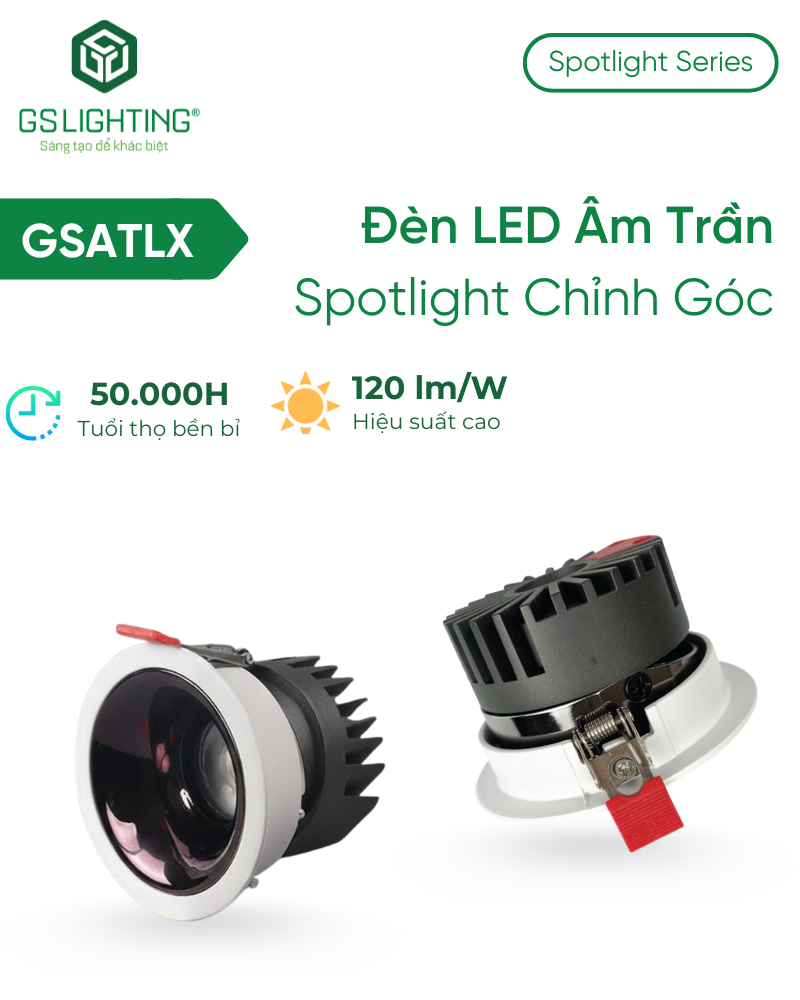 Đèn LED Âm Trần Spotlight Chỉnh Góc 7W 10W GSATLX là lựa chọn phù hợp cho các công trình cần đèn led âm trần chiếu nhấn gọn, linh hoạt và dễ tích hợp vào trần thạch cao. Nếu nhu cầu của bạn là chiếu tranh, chiếu kệ, chiếu decor, nhấn vật thể hoặc làm nổi bật một vùng nhỏ trong không gian, đây là model hợp lý hơn downlight thông thường. Sản phẩm phát huy tốt nhất khi được dùng đúng vai trò: chiếu điểm có kiểm soát, không phải chiếu nền đại trà.