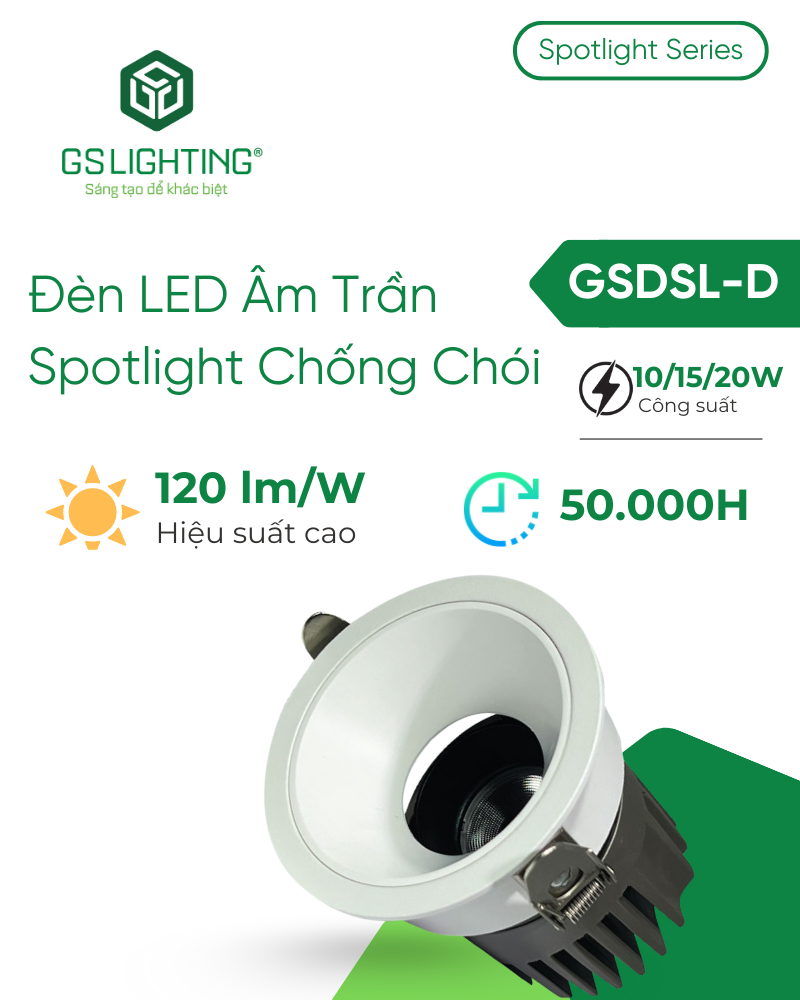 GS Lighting đang xây dựng lợi thế ở nhóm đèn led âm trần có thông số rõ, ngôn ngữ thiết kế phù hợp nội thất hiện đại và tập trung vào chất lượng ánh sáng thực tế. Với GSDSL-D, thương hiệu cho thấy định hướng rõ ở nhóm spotlight chống chói dành cho công trình dân dụng cao cấp, hospitality, retail và các dự án cần ánh sáng có chiều sâu nhưng không gây mỏi mắt.