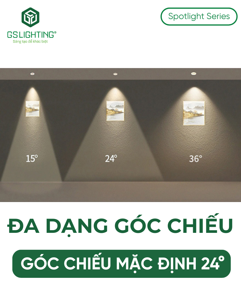 Một điểm đáng chú ý khác là góc chiếu mặc định 24°. Đây là mức góc rất dễ dùng trong thực tế vì đủ tập trung để tạo điểm nhấn, nhưng chưa quá hẹp để gây cảm giác gắt hoặc tạo tương phản quá mạnh. Với các dự án cần giải pháp an toàn, dễ triển khai và ít sai lệch khi bố trí, góc 24° thường là cấu hình hợp lý.