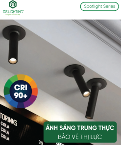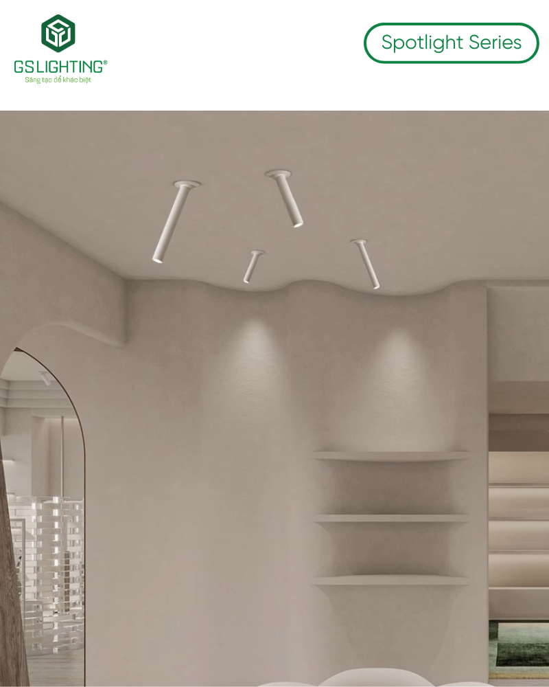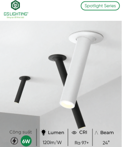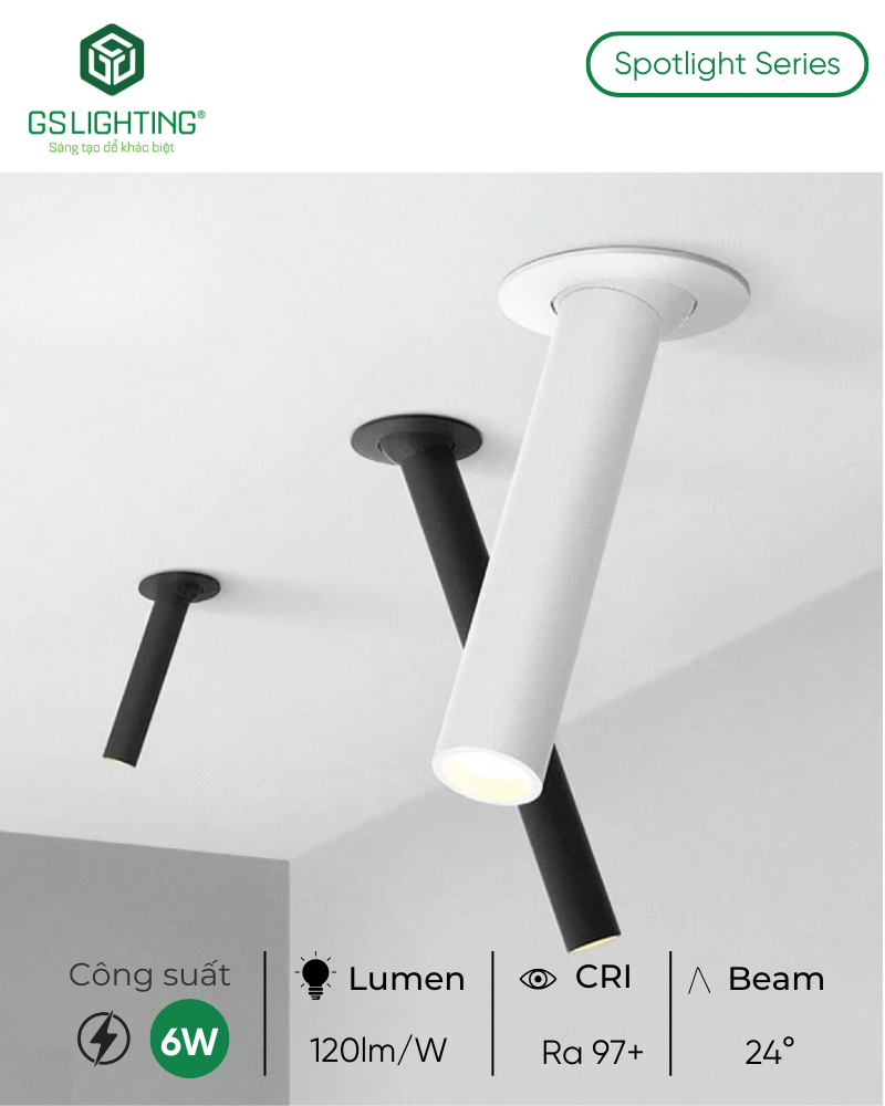 Đèn LED Âm Trần Spotlight Dạng Ống 6W GSATO6 là lựa chọn phù hợp cho công trình cần một mẫu đèn led âm trần vừa có tính kiến trúc, vừa có chất lượng ánh sáng cao. Sản phẩm đặc biệt mạnh ở 4 điểm: thiết kế dạng ống khác biệt, CRI Ra 97+, beam 24° cho chiếu nhấn rõ và 3 chiều dài dùng chung lỗ khoét 55 mm. Với showroom, retail, cafe, quầy lễ tân và các không gian nội thất cần phân lớp ánh sáng tốt, đây là mẫu đèn có tính ứng dụng thực tế cao và dễ chốt phương án.