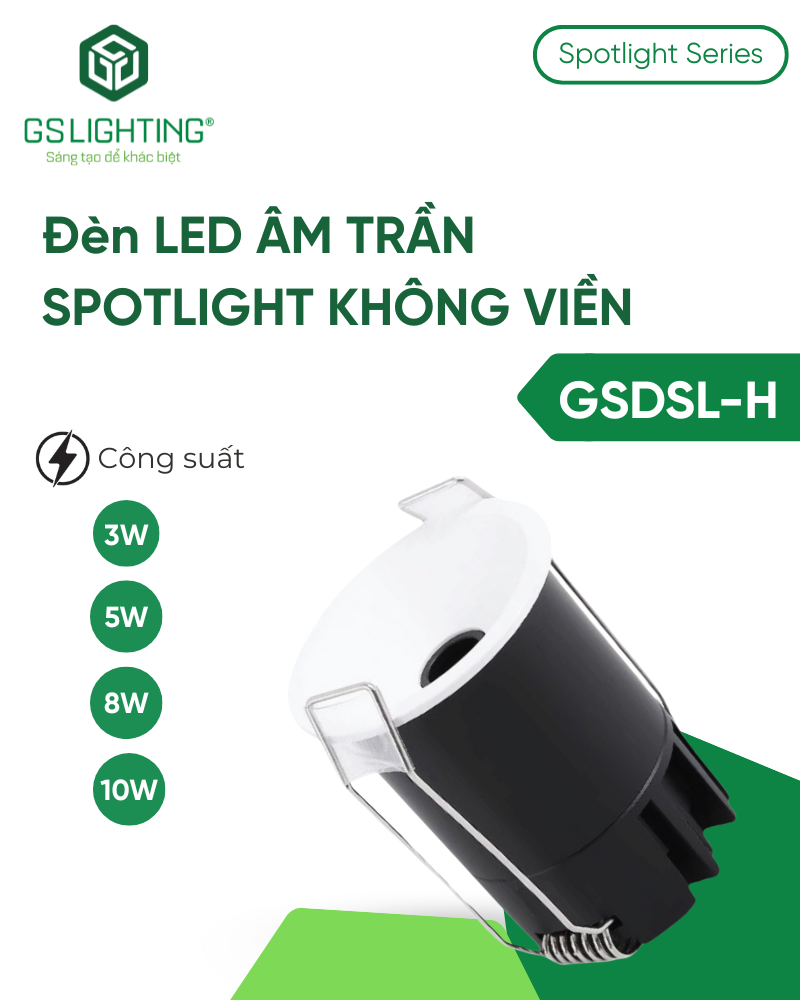 Nếu bạn đang tìm một mẫu đèn led âm trần có mặt trần gọn, ánh sáng tập trung, CRI cao và nhiều mức công suất để linh hoạt theo từng vị trí, Đèn LED Âm Trần Spotlight Không Viền 3W 5W 8W 10W GSDSL-H là lựa chọn đáng cân nhắc. Giá trị thực của sản phẩm nằm ở khả năng kết hợp giữa thẩm mỹ âm viền và chiếu điểm chính xác, phù hợp với showroom, villa, khách sạn và các công trình nội thất cao cấp.