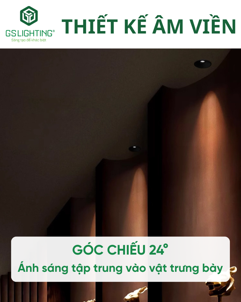 Điều quan trọng cần hiểu đúng là đây là spotlight âm trần beam hẹp 24°, nghĩa là thiên về accent lighting hơn là chiếu sáng nền. Chọn đúng vai trò sử dụng sẽ giúp người mua tránh nhầm lẫn giữa spotlight và downlight.