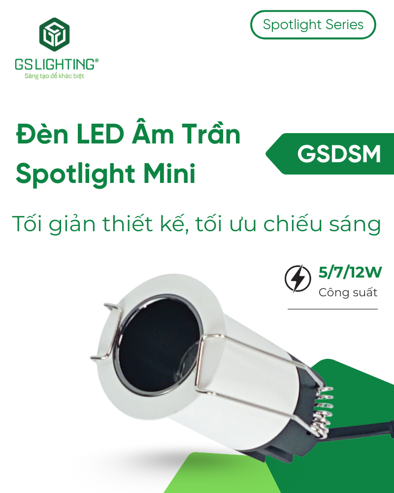 Đèn LED Âm Trần Spotlight Mini 5W 7W 12W GSDSM là lựa chọn phù hợp cho các công trình cần đèn led âm trần chiếu điểm, kích thước nhỏ, ánh sáng nhấn rõ và khả năng thể hiện màu sắc tốt. Đây là mẫu đáng cân nhắc cho showroom, retail, khách sạn và các không gian nội thất cao cấp nơi ánh sáng phải vừa đẹp vừa có tính kỹ thuật.