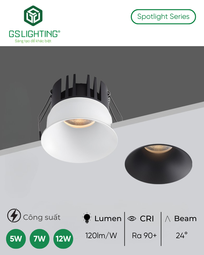| Tên sản phẩm | Đèn LED Âm Trần Spotlight Viền Mỏng 5W 7W 12W GSDSL-I |