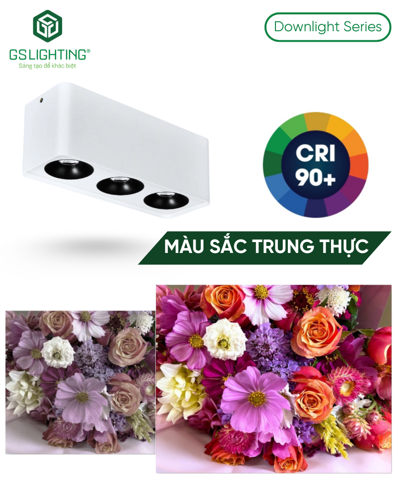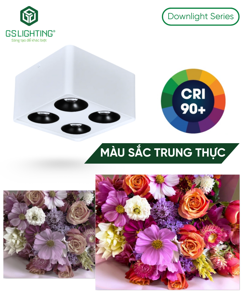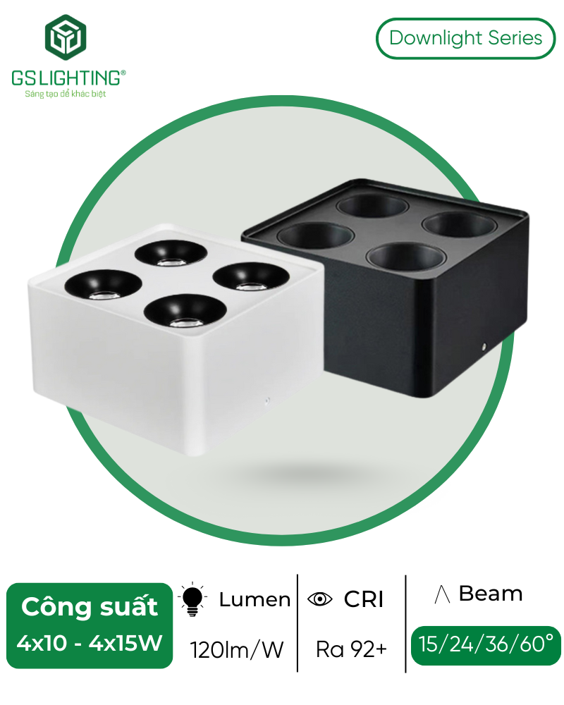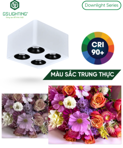 - Ưu điểm lớn của GSOBM4X là công suất mạnh, hình thức rõ khối, phù hợp trần không khoét lỗ, nhiều lựa chọn beam và có CRI cao. Đây là mẫu đèn ốp nổi 4 đầu phù hợp cho không gian thương mại, trưng bày, bàn dài, sảnh hoặc khu vực cần tạo cụm sáng rõ rệt.