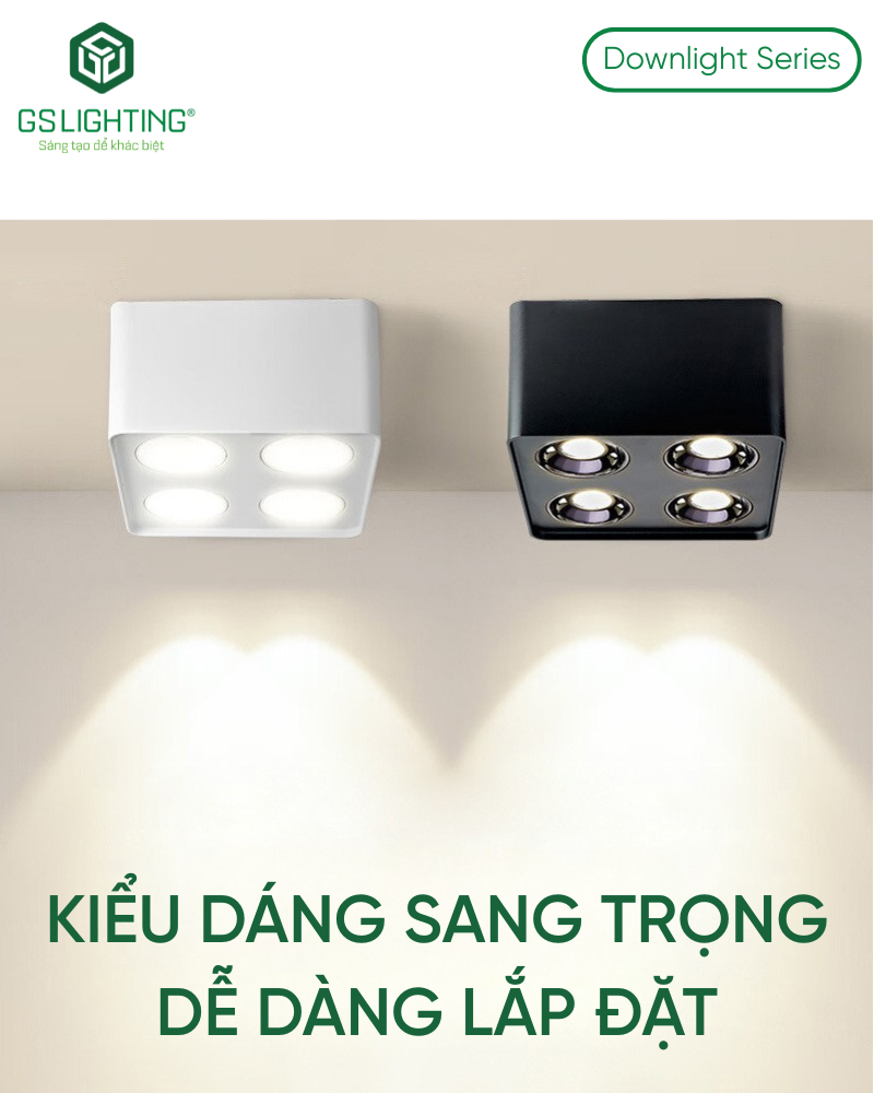 So với đèn âm trần, GSOBM4X phù hợp hơn khi không thể khoét lỗ hoặc muốn giữ ngôn ngữ đèn nổi rõ trên trần.