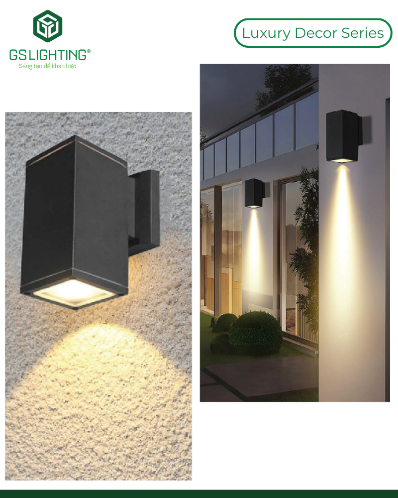 Đèn Hắt Tường 1 Hướng 10W GS-HT1H là dòng đèn trang trí gắn tường ngoài trời dùng để tạo hiệu ứng chiếu sáng hắt một hướng xuống dưới hoặc theo phương thiết kế của công trình. Đây là nhóm đèn được sử dụng nhiều trong kiến trúc mặt tiền, hành lang, ban công, cột trụ, lối đi ngoài trời, khu villa, nhà phố, khách sạn, resort và các dự án cảnh quan yêu cầu vừa có ánh sáng chức năng vừa có hiệu ứng thẩm mỹ.