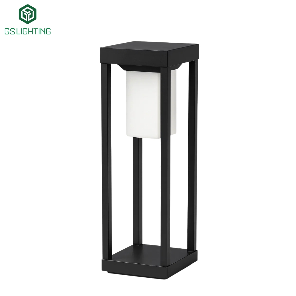 GS-TVT là kiểu đèn trụ sân vườn dáng hộp vuông/khung chữ nhật, bên trong là lõi tán quang. Điểm “ăn tiền” của thiết kế này là cảm giác kiến trúc: nhìn chắc chắn, gọn gàng, đặc biệt hợp các công trình theo phong cách modern, minimal, contemporary.