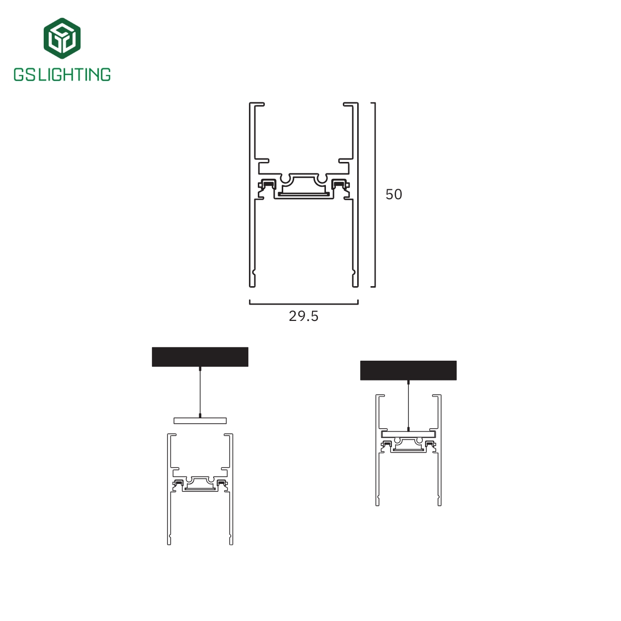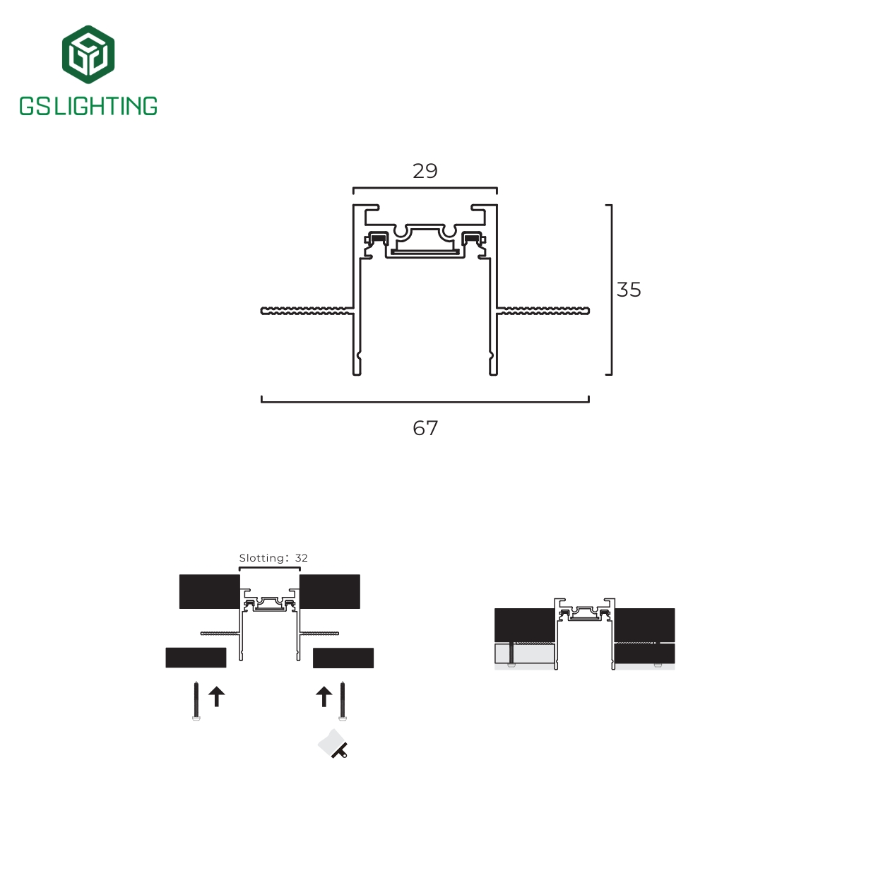 Trong thi công thực tế, khách hàng thường “nhìn” ray trước khi “đo” thông số. Ray GSRNC cho cảm giác liền mạch, đường line sắc gọn. Điểm cộng là kích thước W29×H35 dễ xử lý trong trần thạch cao phổ biến: vừa đủ không gian cho cấu trúc ray và vị trí đi dây, nhưng vẫn giữ được độ thanh thoát khi hoàn thiện.